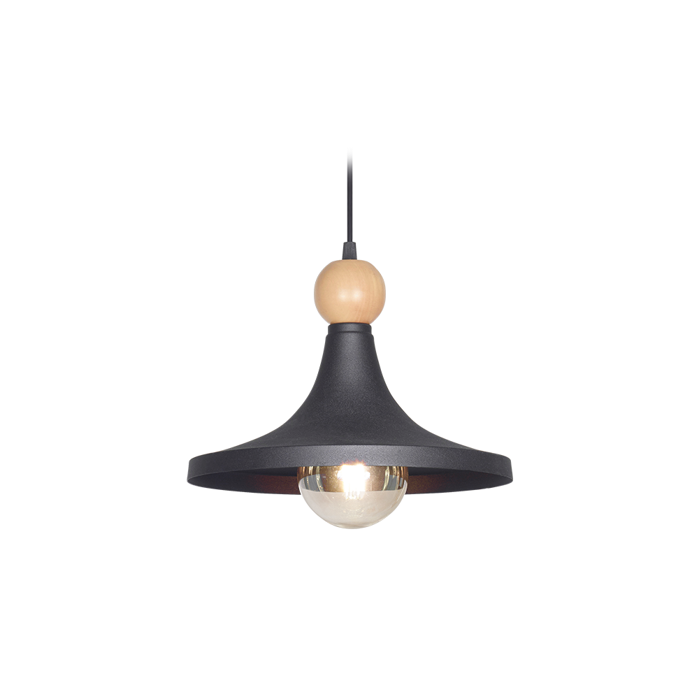 Colgante 1 luz cónico con madera