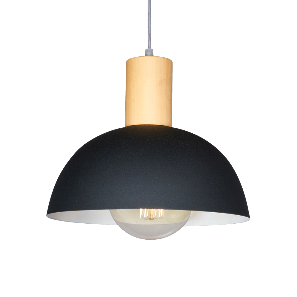 Colgante 1 luz media esfera con cono de madera